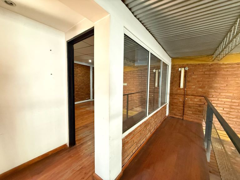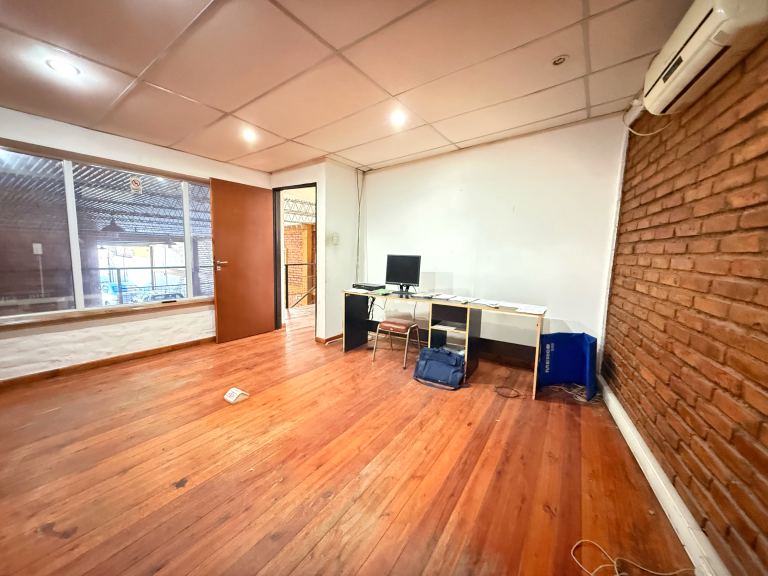 • Salón principal de 140 m2 con ladrillos vistos y pisos de cerámica, ideal para depósito, taller o área de producción.